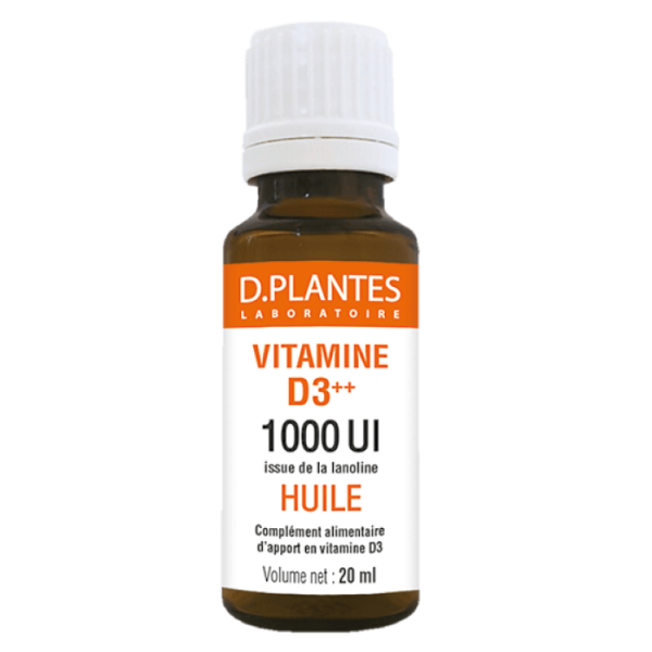 La Vitamine D3++ huile 1000 UI 20 ml est une forme liquide de vitamine D3 (cholécalciférol) souvent utilisée pour compléter l'alimentation en vitamine D, particulièrement en cas de carence ou pour soutenir la santé des os, du système immunitaire et de bien d'autres choses.